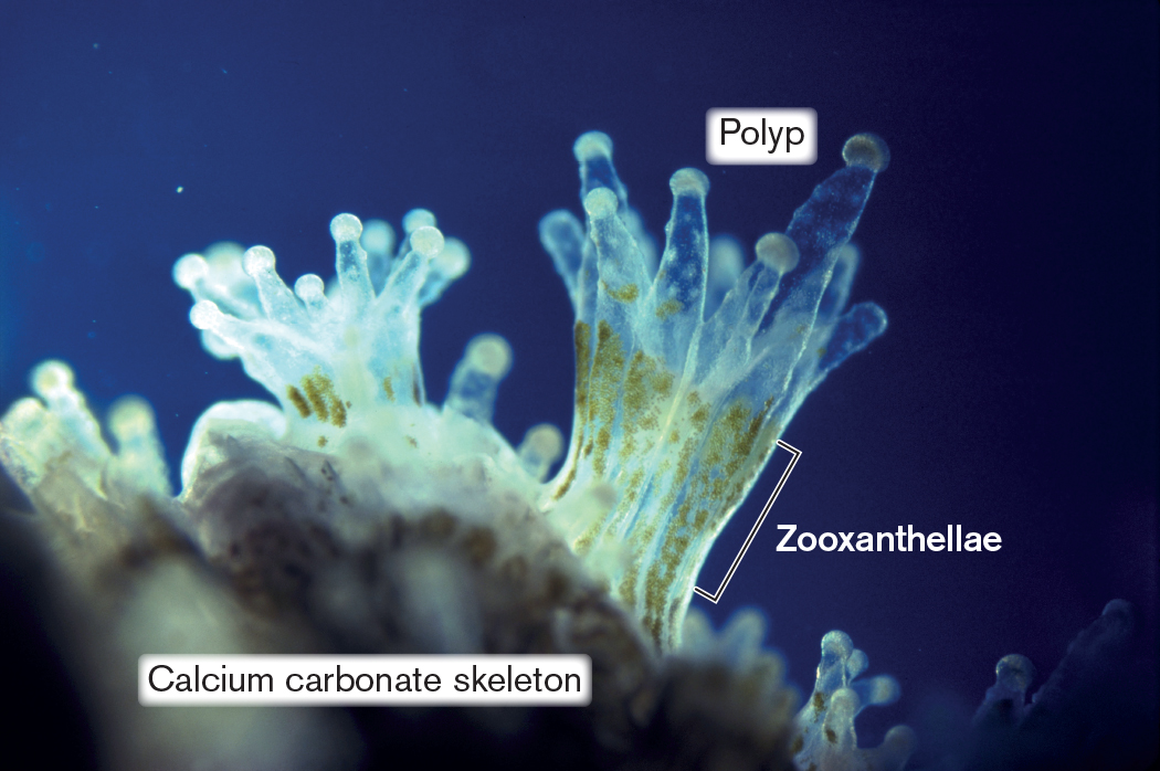- This is a symboitic relationship between the coral polyp and the zooxanthellae, meaning both partners benefit.