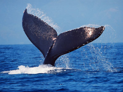 Whales, dolphins and porpoises belong to the order of Cetacea. An easy way to tell the difference between Cetacea and fish is by looking at the end of the tail, which is called a "fluke". Cetaceans have horizontal flukes, while fish tails are vertical. If you look closely, you will see that each fluke is unique, like a fingerprint. So, we can track individual whales as they migrate over large distances and over the years. Zoom in and see for yourself in our whale fluke image gallery. The jagged edges along the back of the fluke, along with scars and other markings help identify a specific whale.